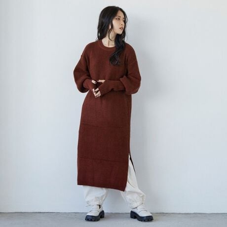 少し毛足のあるモヘアタッチアクリルの糸で編まれたニットワンピース。