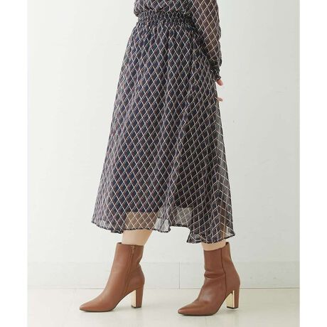 クラシカルなダイヤ柄が秋の気分にぴったりなシフォンスカート。落ち感がある素材は広がりすぎないので甘くなりすぎず大人っぽく着こなせます。ウエストゴムでストレスフリーな着心地も嬉しい。