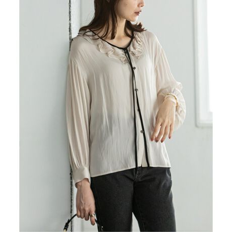 襟パイピングブラウス