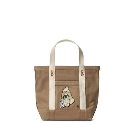 Ralph Laurenの2つのアイコンをあしらった耐久性の高いキャンバストートバッグ。冬の装いに身を包んだPoloベアとポニーの刺繍が特徴的なアイテム。