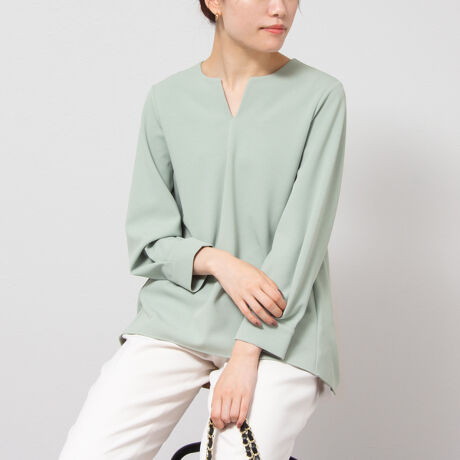 ・ブラウス見えするきれいめ素材で、伸縮性もあり快適な着心地