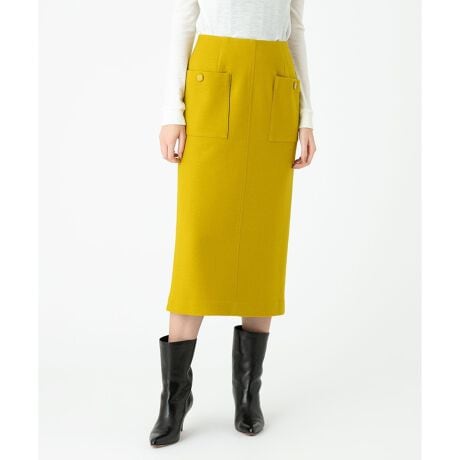 ウール100%のメルトン素材を使用した、ミモレ丈タイトスカート。