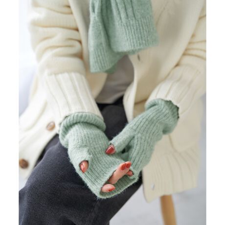 ・リブ編みのフィンガーレスロンググローブ。