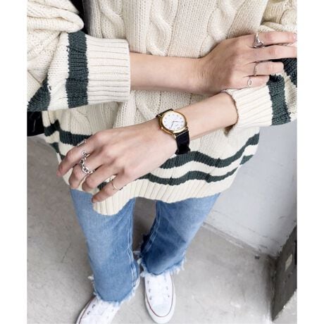 金色メッキのケースにブラックの牛革(カーフ)のクラシカルな印象が特徴。