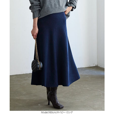 上品な印象が叶うニットフレアスカート。動きにあわせて揺れる、フェミニンなニュアンスの1枚です。