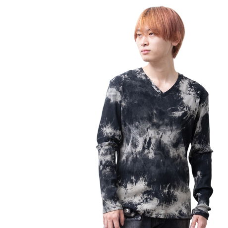 Tシャツ メンズ 長袖 ムラ染め Vネック ヴィジュアル系 ロック パンク tシャツ テレコ