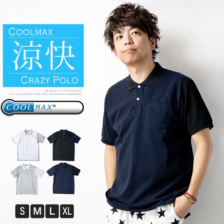 商品情報:半袖ポロシャツ クレイジー パターン 涼しい 冷感 接触冷感 COOLMAX 無地 テニス 通気性 白 黒 通学 S M L LL XL 大きいサイズ カジュアル 全4色 NEK-53