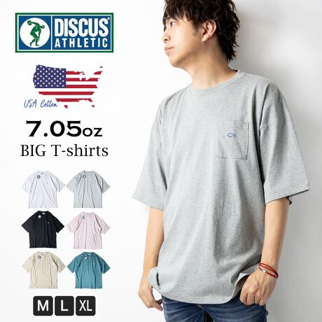 商品情報:シンプル 無地 BIGサイズ 白 黒 ピンク ベージュ M L LL XL 大きいサイズ 半袖Tシャツ ディスカス DISCUS 全6色 0273-4552