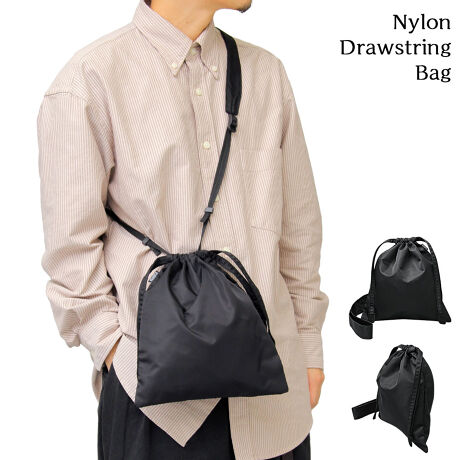 適度な光沢で高級感がポイントの高密度ナイロンを使用した巾着バッグ。