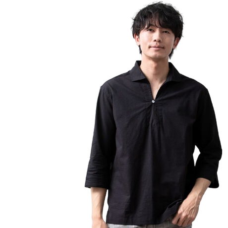 シャツ メンズ カプリシャツ 七分袖 プルオーバー プルオーバーシャツ 麻 7分袖 リネンシャツ