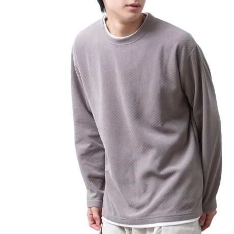 商品名:tシャツ メンズ 長袖 重ね着風 フェイクレイヤード クルーネック ジャガード 楊柳 秋冬