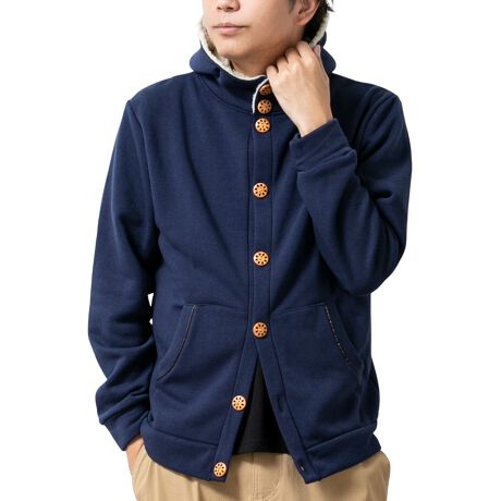 商品情報:ボタン マフラー要らずで首元まで暖かい! もこもこパーカー★ シンプル 無地 切り替え 暖かい もこもこ 柔らかい おしゃれ ウッドボタン 秋服 冬服 グレー ネイビー ブラック 黒 M L LL XL 大きいサイズ 全8色 79811