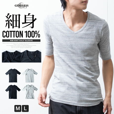 商品情報: Uネック 秋冬 スパイフライス スリム インナー 綿 全2色 無地 綿100% 半袖Tシャツ シンプル vネック コットン100% 黒 グレー ブラック 春 秋 M L メンズファッション トップス カットソー 七分袖 五分袖 アメカジ カジュアル プレゼント ギフト おしゃれ ジェネレス GENELESS 杢チャコール 杢グレー