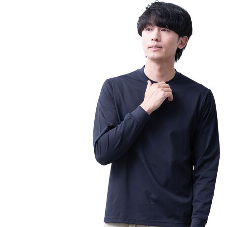 商品名:長袖 tシャツ メンズ 衿高 テフロン加工 撥水 防汚 Tシャツ クルーネック 長袖シャツ