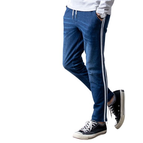 商品情報: デニムパンツ スウェットデニム インディゴ スリム ジーンズ メンズパンツ ライン ラインパンツ スキニーパンツ 全4色 FG025 AG01 スウェット コットン 綿 無地 ブルー M L LL XL メンズファッション ズボン アメカジ カジュアル シンプル プレゼント ギフト おしゃれ ジェネレス GENELESS ボトムス ブルーA インディゴA