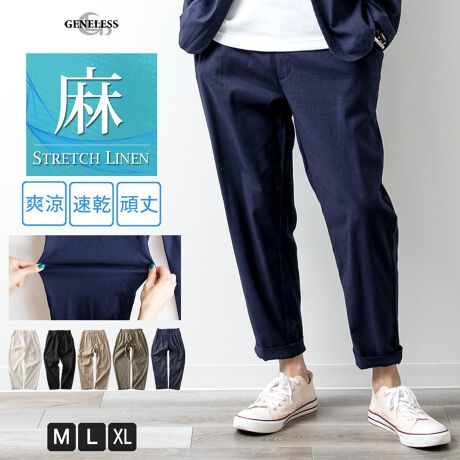 商品名:ワイドパンツ メンズ クロップドパンツ 綿麻 ボトム リネン イージーパンツ ストレッチ アンクル