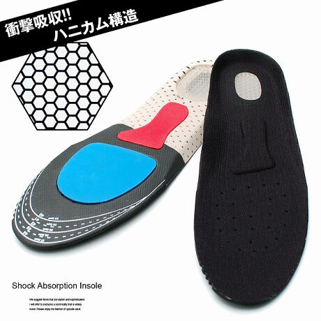 商品情報:歩行を優しくサポート”衝撃吸収ハニカム構造”インソール! 低反発インソール 男女兼用 土踏まず かかと アーチサポート