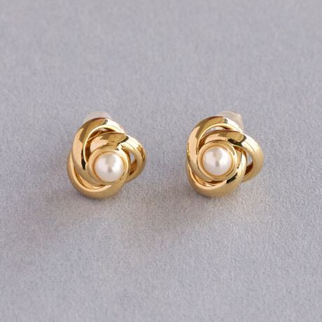 【パールに3つのリングが絡み合ったトリニティデザインピアス】