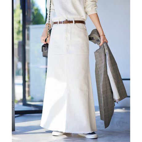 ◆オールシーズン活躍のホワイトデニムスカートのお目見え