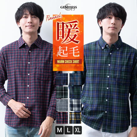 商品情報: ボタンダウン 長袖シャツ 定番 人気 秋服 冬服 ブラウス ワイシャツ アメカジ チェック メンズシャツ 全8色 起毛 M L LL XL 大きいサイズ メンズファッション カジュアル プレゼント ギフト おしゃれ ジェネレス GENELESS R01 ネイビー R02 Dグリーン R03 モノ R04 レッド B05 ブルー B06 Bグリーン B07 グレー B08 イエロー
