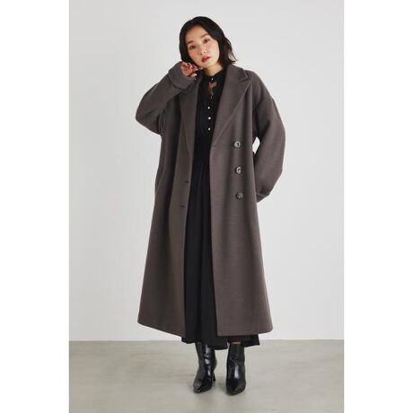 定番に着やすいバックベルトデザインがポイントのウール混チェスターコート。シングルコートに見せかけたダブルコートの作りのため、前の重なりでより暖かみを感じられます。ウール混率50%ですがマットすぎない生地で製作しているため女性らしい雰囲気を演出できます。アームホールのゆとりがあるため厚手のknitの上からでも簡単に羽織れるところも嬉しいポイント。女性らしいイメージのIVO、差しカラーで目を惹くPNK、落ち着いた雰囲気を醸し出すD/BRNの3色展開です。