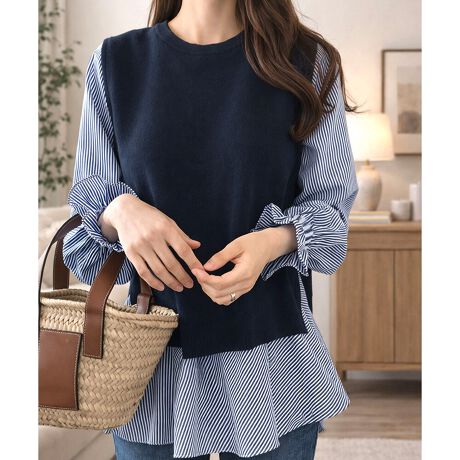 ニットベスト付きブラウス