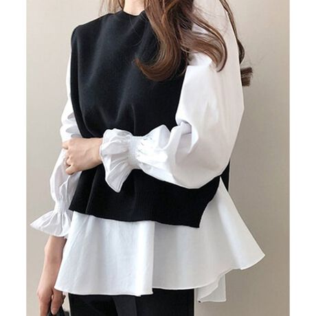 ニットベスト付きブラウス
