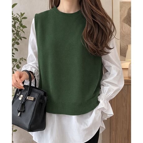 ニットベスト付きブラウス