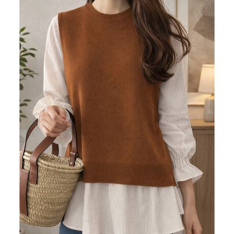 ・ニットとブラウスを分けて着る事ができるので、その場のシーンに合わせて使い分けできる。着回しにも最適です◎