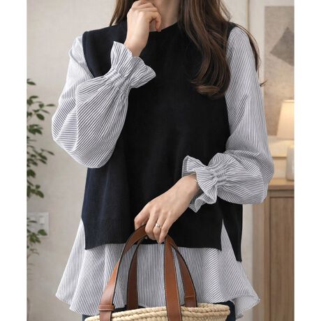 ニットベスト付きブラウス