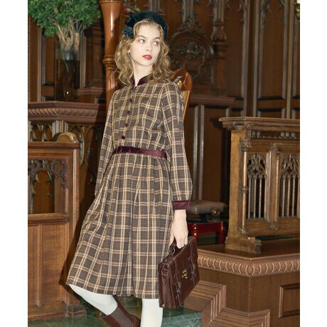 別珍使いエポレットディテールチェックワンピース