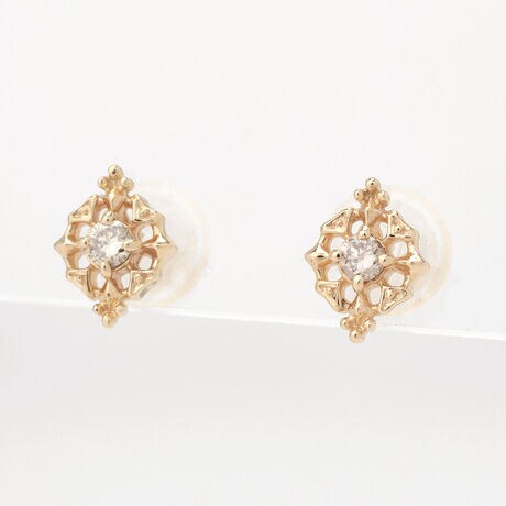 「氷花」小さな氷の粒が結晶化して白い花を咲かせたように見える、幻想的な氷花がモチーフ。キラキラとしたダイヤモンドと繊細な透かし模様が静謐な輝きを放ちます。ふたつと同じ形の無い結晶のように、ベーシックなアイテムを自分らしく選びたい方へ。ひとさじの個性を添えた、一粒ダイヤモンドジュエリーです。※ポスト部分はK10、その他の部分は K5を使用しています。※天然石や天然素材を使用しているものは、サイズ・色味・風合いの違いや、若干の傷、内包物の有無などに個体差があります。予めご了承ください。▼オススメコーディネート品番:30224111072、30224116036。