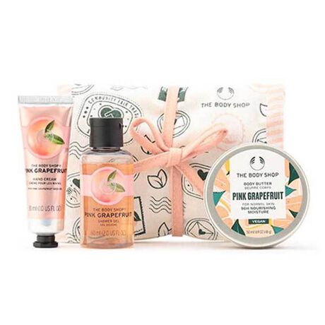 フレッシュでジューシィなピンクグレープフルーツの香りに包まれながらボディ&ハンドケアをお楽しみいただける、ポーチ付きの数量限定ギフトです。