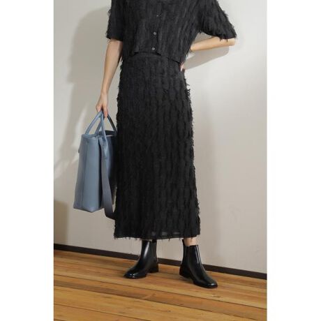 フリンジ素材が特ののシンプルなIラインシルエットスカート