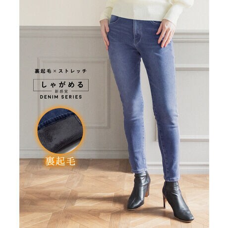 裏起毛ボンディのあたたかスキニーデニムパンツです。