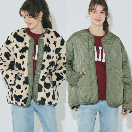 ボアとキルティング、異素材の切り替えを楽しめるリバーシブルデザイン。
