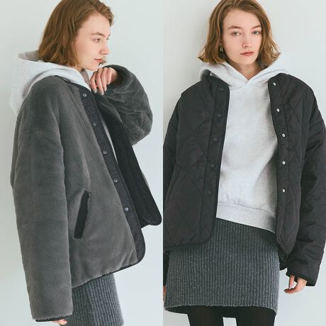 ボアとキルティング、異素材の切り替えを楽しめるリバーシブルデザイン。