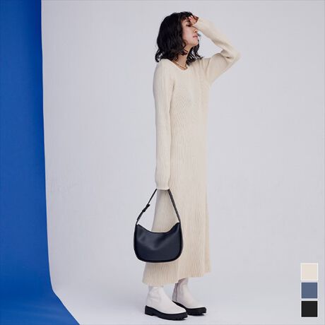 ロングスリーブリブニットワンピース