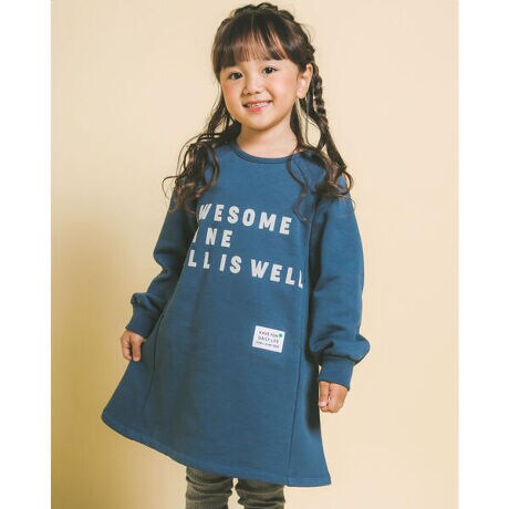 ノイユ エーム ベベの【 お揃い 】 裏起毛 フロッキー プリント ポケット 付 虹 ワッペン ワンピース (80〜13。