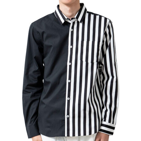 商品名:シャツ メンズ 長袖 切替 ストライプ 長袖シャツ 国産 ブラウス ワイシャツ ボーダー メンズシャツ