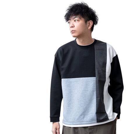 商品情報: フェイクレイヤード オーバーサイズ 秋冬 柔らかい ビッグシルエット 全5色 シンプル 無地 黒 グレー ネイビー M L LL XL 大きいサイズ メンズファッション トップス 長袖 アメカジ カジュアル ストリート プレゼント ギフト おしゃれ ジェネレス GENELESS グレージュ モカ グリーン アイボリー 杢チャコール ブラック チャコール ブラウン ミント パープル 20A ホワイト切替 41A ブラック切替
