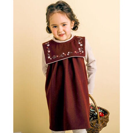 【 お揃い 】 セーラー カラー 花 刺繍 ジャンパースカート (90〜130cm)