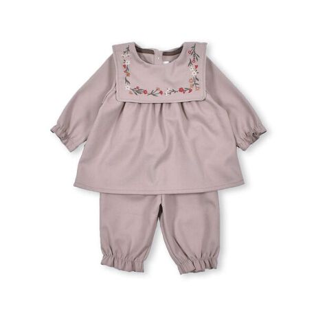 【 お揃い 】 セーラー カラー 花 刺繍 セットアップ ベビー (70~80cm)