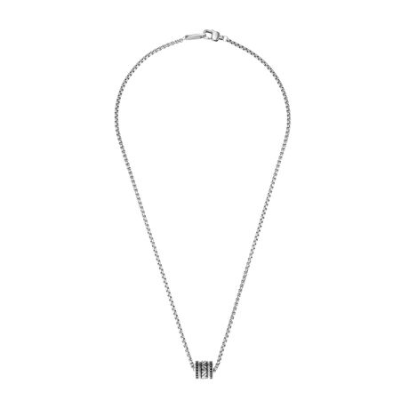 Emporio Armaniのコンポーネントネックレス。ブラックラッカー、ステンレススチール、ブラッククリスタルが特徴です。ロブスタークラスプ付き。