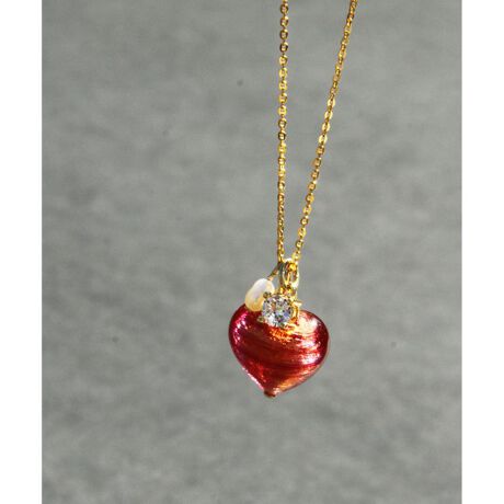 ワイスチャームの【イタリアのヴェネチアンガラス♪】レッドメタリックハートネックレス(ゴールドフィルド)。
