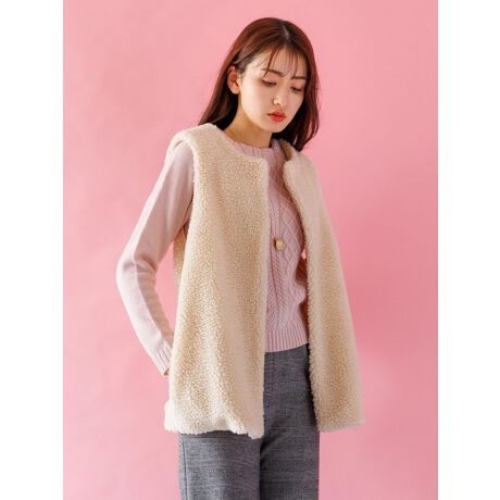 ニット素材で伸縮性のある素材のボアのジレ。