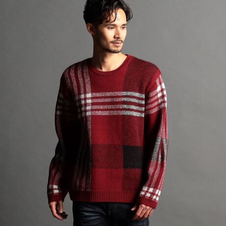 【22年モデル WEB限定再販売】ビッグチェッククルーネックニット