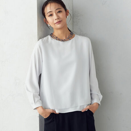 レイヤード風で、一枚で様になるきれいめカットソーです。