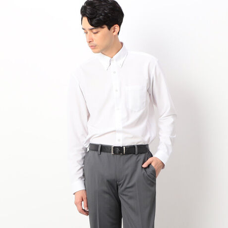 ボタンで衿先を留めるデザインのため、第一ボタンを外した時も衿が開かないポイントも