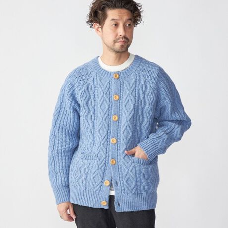立体的でデザイン性の高い編地がポイントのフィッシャーマンカーディガン。